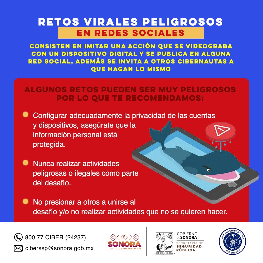 Hermosillo, Sonora; 30 de marzo de 2023.- Un llamado a madres y padres de familia a mantenerse vigilantes de niñas, niños y adolescentes, para que no compartan ni realicen retos virales peligrosos, hizo la Secretaría de Seguridad Pública (SSP) de Sonora, a través de su Unidad Cibernética.