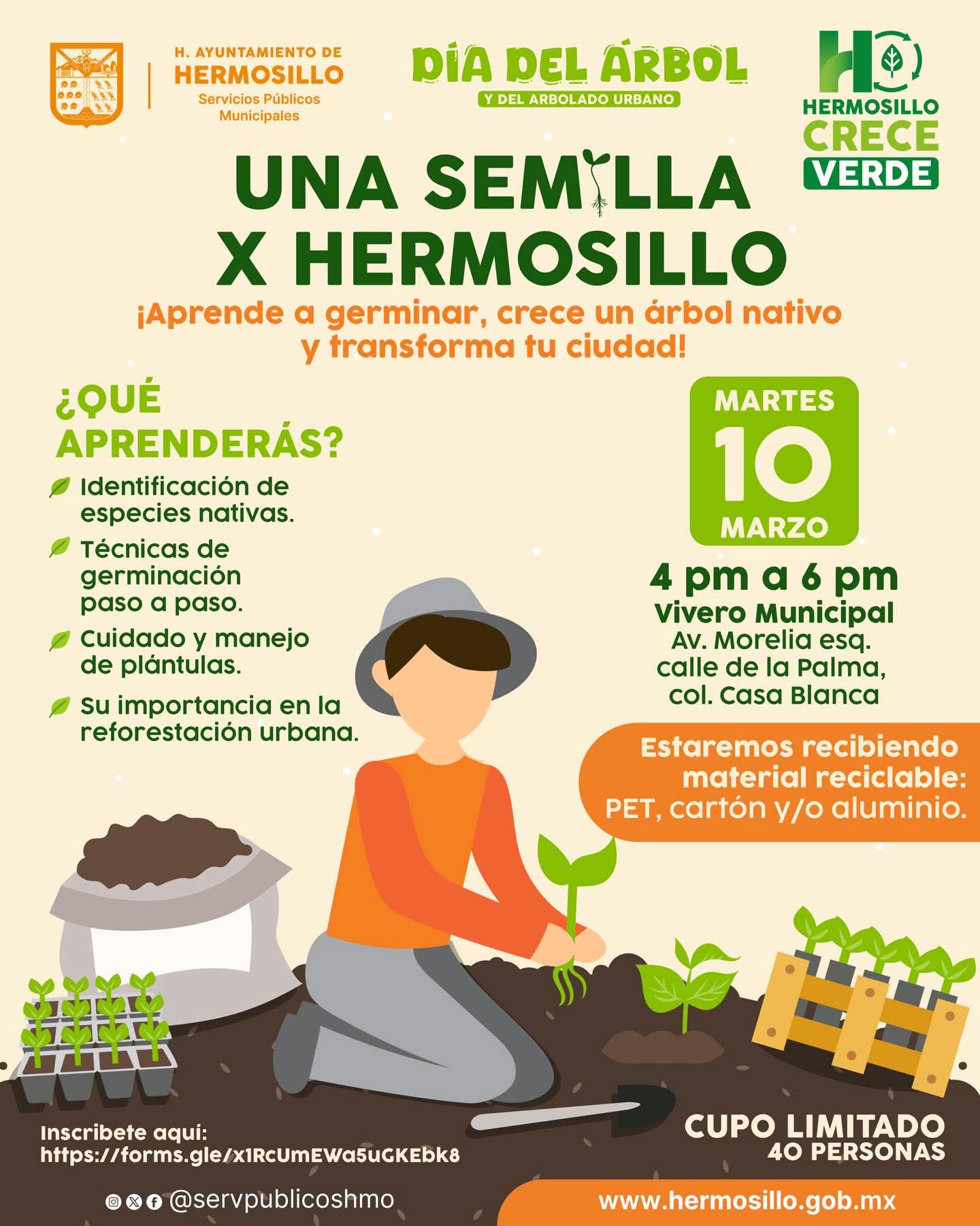 este martes 10 a través del taller gratuito “Una Semilla X Hermosillo” aprenderán a germinar y crecer un árbol nativo para contribuir a transformar la ciudad.
