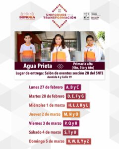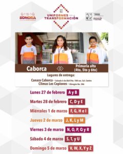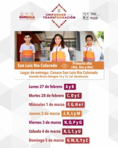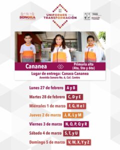 El Gobierno de Sonora, a través de la Secretaría de Educación y Cultura (SEC) informó que la entrega se realizará por orden alfabético y alentó a padres y madres de familia, así como tutores, a consultar el calendario específico en el portal www.sec.gob.mx/uniformes y en las redes sociales oficiales de la dependencia.