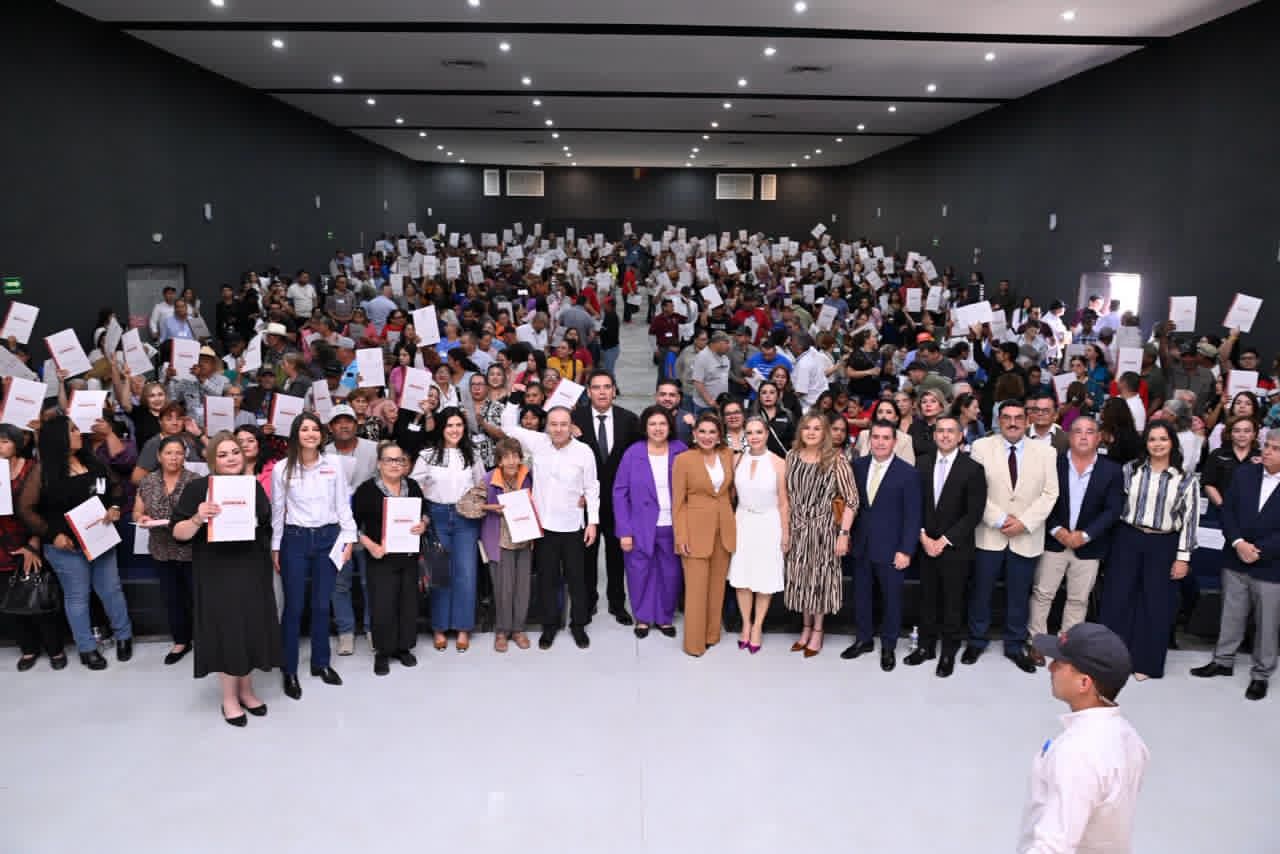 Durante su gira de trabajo, en la que también encabezó en Caborca la conmemoración del 169 aniversario de la Gesta Heroica, el mandatario estatal entregó 600 escrituras de lotes habitacionales a familias de las colonias Palo Verde, Juan Chait I y Juan Chait II, brindando certeza jurídica y patrimonial a quienes durante años esperaron este documento que les da seguridad y tranquilidad sobre su patrimonio.